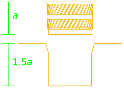 Other guides suggest adding a small taper to the hole feature. This is a nifty feature that enables inserts to seat themselves into the hole before installing them with heat. Some inserts are themselves tapered, which has the same seating effect on an un-tapered hole. Adding this tapered feature (or buying the slightly-more-expensive tapered inserts) isn’t necessary, but it does make the installation process easier.