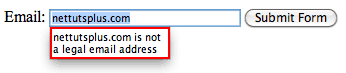 It should also be noted that all the current browsers are a bit wonky when it comes to what elements and attributes they do and don't support. For example, Opera seems to support email validation, just as long as the name attribute is specified. However, it does not support the placeholder attribute, which we'll learn about in the next tip. Bottom line, don't depend on this form of validation just yet...but you can still use it!