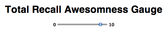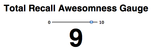 <form method="post"><h1> Total Recall Awesomness Gauge </h1><input type="range" name="range" min="0" max="10" step="1" value=""><output name="result"> </output></form> |