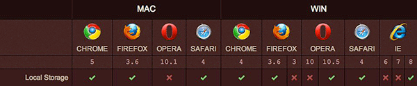 While obviously not supported across all browsers, we can expect this method to work, most notably, in Internet Explorer 8, Safari 4, and Firefox 3.5. Note that, to compensate for older browsers that won't recognize local storage, you should first test to determine whether window.localStorage exists.