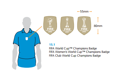 In continuing the theme of past champions, member associations that have won one or more editions of the World Cup may display a five-pointed star(s) on the shirt and/or shorts. The star(s) must be positioned immediately above the member identification.