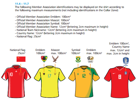 Manufacturers must adhere to FIFA's 92-page Equipment Regulation style guide when designing uniforms.