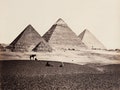 Francis Frith’s “The Pyramids of El-Geezdeh from the Southwest” (albumen print, circa 1860) is almost an early-photography cliché. Pyramids were professional favorites (Frith himself photographed many) because (a) they’re not going anywhere, and so they tolerate long exposure times, (b) they offer excellent formal elements for contrast, such as, for example, when a side of the pyramid that reflects light abuts a side in shadow, and (c) they enable photography to do what early photography (and, later, early cinema) loved to do, and what vacation pictures the world over do today, which is to bring the exotic back home. The level of detail Frith was able to render is virtually high-def. Each individual stone can be made out on a pyramid that must be half a mile from the camera.