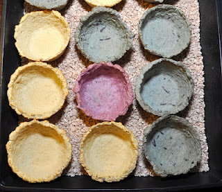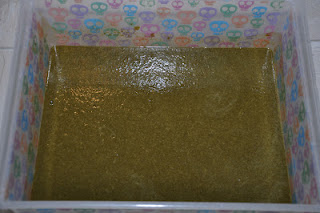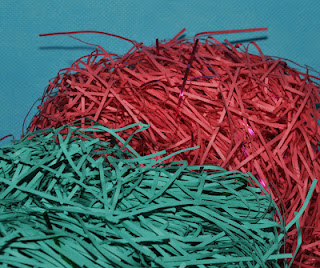 I like to use brightly colored shredded paper for adding color, because you don't have to mess with dye.