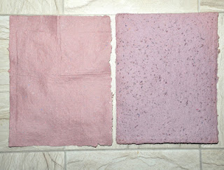 This is what a sheet of it looks like wet. It was easier to make this paper thick more like card stock, rather than thin like printer paper.