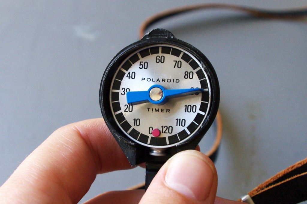 Once the picture has passed through the rollers and is outside of the camera, development has started. Immediately start the timer if you have one. If you don't, start counting in your head or aloud.