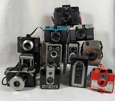 The manuscript sat dormant until 2019. As COVID-19 eliminated many of the activities that I had planned, I knew that working on a toy camera issue for my new zine Monochrome Mania would occupy my time. What I soon realized, was that if I was going to expand the selection of cameras, I needed to go on eBay and purchase camera models that I once owned so that I could photograph them as well as run film through them. At one time, I probably had well over 250 cameras in my house in Ann Arbor, and over the course of a decade, sold off a lot of the ones that I had lost interest in, were shelf queens, or were just unrelated to my photographic interests at the time. Luckily, the market for cheap Bakelite cameras is not an expensive one, and I was able to procure ones that I felt should be in the issue. I limited the scope to medium-format toy cameras for a reason -- 120 and 620 film cameras offer the largest negatives, and one gets all the benefits of cheap lenses. There are quite a few models to choose from, as well. I left out 127 cameras even though there were hundreds of models made. The film just isn’t readily available, and that made little sense to include them. I do plan on doing a follow-up issue with 35mm toy cameras sometime in 2021.