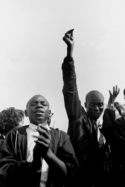 “‘Across the San Joaquin Valley, across California, across the entire nation, wherever there are injustices against men and women and children who work in the fields–there you will see our flags–with the black eagle with the white and red background, flying. Our movement is spreading like flames across a dry plain.’ Cesar Chavez . In this photograph, Cesar Chavez is seen among men and women who have made physical and emotional crossings to improve their own lives and to fight for workers’ rights. ‘La Causa,’ Chavez’s United Farm Workers’ movement, used non-violent tactics to improve the terrible conditions suffered by these laborers and their children, to ensure farm workers’ rights and to achieve fair and free elections. While photographing this movement I was deeply touched by the farm workers and their families, both their bravery and by their commitment to each other and to future generations.” – Paul Fusco