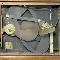 I needed a plane shutter that would take up less depth and allow for a wider angle lens. I abandoned spring drives and moved to a gear system which wouldn’t be vulnerable to breaking. I found a reference of a shutter from 1885, with two counter-rotating planes and a translating linkage.