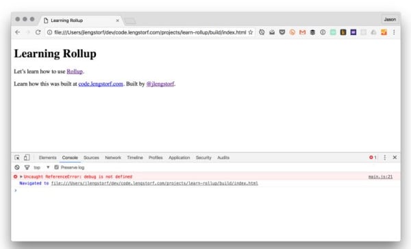 And if we check our index.html again, we can see that a ReferenceError was thrown for debug: