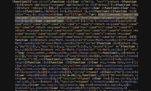The output isn't pretty, but it's much smaller. Here's a screenshot of what build/js/main.min.js looks like now: