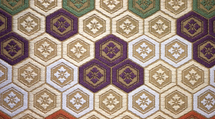 Another geometric design, the tortoiseshell pattern originated in Western Asia and can be large or small. In Asian cultures, the tortoise represents longevity, and this pattern symbolizes luck and longevity. Additional designs can be found inside the hexagons, such as lucky motifs, flowers, or family crests. Kimono frequently feature tortoiseshell patterns.